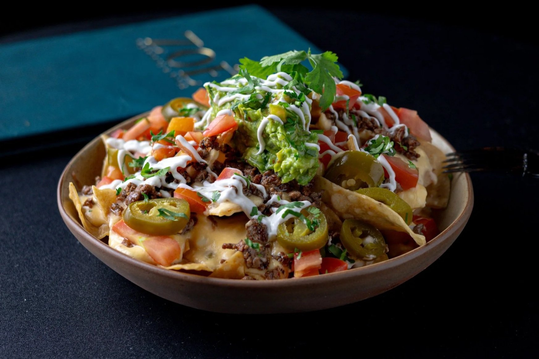 Pinto beans, shredded cheese, pico de gallo, onions, cilantro, sour cream, guacamole.